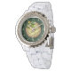 Eine wunderbare Damenuhr mit weißem Armband und grün-weiß-kariertem Ziffernblatt. Trägt sich ganz fabelhaft. Exzellenter Druck, sehr klare Farben. Schönes Design.