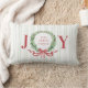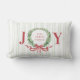 Dieses Weihnachtskissen hat ein typografisches Design mit einem Weihnachtskranz als dem Buchstaben "o" im Wort Freude. Sie können mit Ihrem Familiennamen personalisieren. Der Hintergrund auf der Vorderseite und hinten haben einen hellgrünen, galoppierenden Streifen.