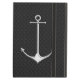 Ein Seeartsilberchrom mag Anker auf einem schwarzen strukturierten Dekor. Ein modernes Seegeschenk sure, zum eines Eindruckes oder weg vom Boot an zu machen.