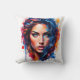 Elektrisches, farbiges Porträt einer Frau, die mit fetten Tropfen, Spritzern und leuchtenden Neontönen in Blau, aquamarin, Magenta und Orange bemalt ist. Der Mix aus Realismus und abstrakter Straßenkunst macht Plakate, Leinwand, T-Shirts und Telefonzellen zu einem eindrucksvollen Plakat. Hochauflösendes Kunstwerk.