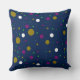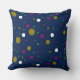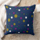 Ein Muster von Kreise unterschiedlicher Größe in Gold, Weiß, lila und Grün ist auf einem dunkelblauen Hintergrund verstreut. Die Kreise sind gleichmäßig verteilt und variieren im Durchmesser.