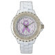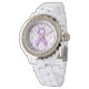 Chrome Style Crystal Pink Ribbon Awareness Strick Armbanduhr