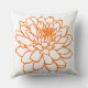Chrysanthemum Zeichnend - Orange auf Weiß Kissen