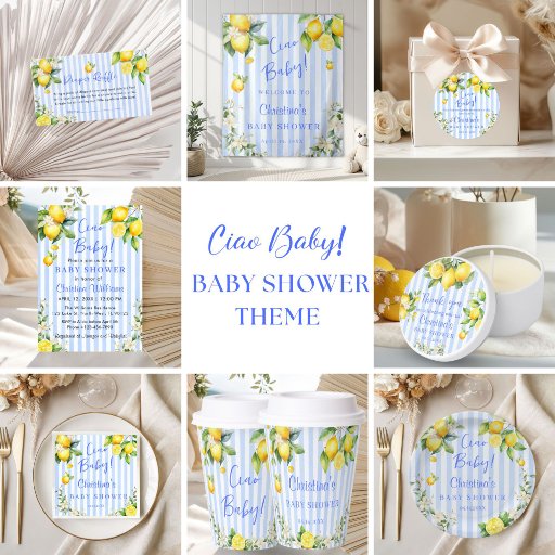 Celebrate your little one with Italian flair using our Ciao Baby Citrus Lemon Baby Shower Invitation! Inspired by the charm of the Amalfi Coast, this elegant invite features a fresh lemon design and a soft blue stripe background, creating the perfect blend of sophistication and sunshine.