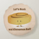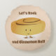 Rund Kissen mit einer lächelnden Zimtwalze, die zwischen den Worten "Lass’s Rock and Cinnamon Roll!" stehend ist. Die Wörter können angepasst werden.