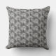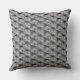 Almofada com formas retangulares em cores cinza mais claro e mais escuro que causam a percepção de profundidade. O verso da almofada é levemente diferente, dando opção de uma dupla escolha.
