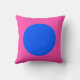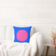 Ein Kissen mit minimalem abstrakten Kreisdesign in Hot Pink und Blue. Die Farben wechseln sich auf jeder Seite ab.