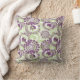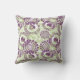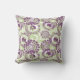 Dieses Kissen hat ein geometrisches Design von Kreisen mit Linien und Kreisen aus wiederholten Punkten in Auberginen und Grün dekoriert.