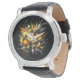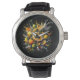 Uhr, Vintage Männeruhr mit schwarzem Lederarmband