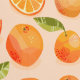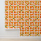 Einzigartiges und auffälliges Zitrusorange-Muster auf einem rot-rosa Hintergrund. Ideal für Ihre Küche, Speisesaal, Restaurant oder Catering. Originelle Kunst von Nic Squirrell.