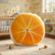 Mit diesem Rundkissen, das ein lebendiges Zitrusorangechmuster aufweist, verleihen Sie Ihrem Dekor eine saftige Drehung. Dieses auffallende Design ist perfekt für die Aufhellung von Wohnzimmern, Innenhöfen, Sonnenterrassen oder sommerlichen Themenbereichen. Das fette Fruchtmuster macht es zu einem lustigen und einzigartigen Akzent für Ihre Zuhause oder zu einem erfrischenden Geschenk für Freunde und Familie.