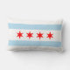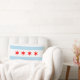 Ein rechteckiges Kissen mit hellblauen Streifen, roten Sternen und weißem Design der Flagge Chicagos. Wenn Sie eine personalisierte Textnachricht hinzufügen möchten, können Sie die Farbcodes FF000 für rot, B3DDF2 für hellblau oder sogar weiß einstellen. Ein nettes Geschenk für ein paar verheiratete in Chicago.