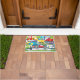 Künstler: Marcus Cutler | Veranschaulichung einer belebten Stadt- und Bushaltestelle mit Fußgängern und Autos, LKW und Läden und einem Jungen auf dem Fahrrad