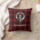 Stilvolles Kissen mit schottischem Clan Cunningham Wappen Abzeichen und anpassbarem Text auf tartan kariertem Hintergrund