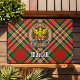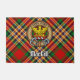 Clan MacGill Wappen Abzeichen umgeben von einem Gurt und Schnalle über Tartan Hintergrund. Eigener Text.
