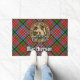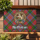 Clan MacPherson Wappen Abzeichen umgeben von einem Gurt und Schnalle über Tartan Hintergrund. Eigener Text.
