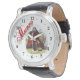 Uhr, Vintage Männeruhr mit schwarzem Lederarmband