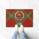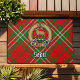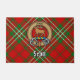 Clan Scott Wappen Abzeichen umgeben von einem Gurt und Schnallen über rot kartan Hintergrund. Eigener Text.