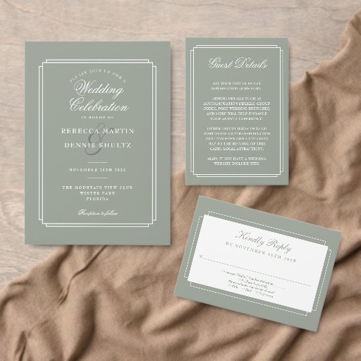 Classic Art Deco Sage Green Wedding RSVP Karte