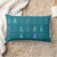 A modern festive throw pillow featuring a calming teal backdrop adorned with minimalist Christmas tree illustrations. The varied tree shapes and soft tonal palette create a playful yet elegant pattern, adding a subtle seasonal charm that complements both contemporary and cosy interiors. A thoughtful gift or home decorative add on.