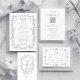 Elegant lavender floral wedding invitation with a floral crest and monograms on the back.