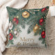 Embrace the traditional Christmas spirit with this vibrant "Merry & Bright" throw pillow. Featuring a luxurious combination of classic red and gold ornaments set against rich, deep green pine foliage, this design is the epitome of festive joy. It instantly transforms any room into a cozy holiday retreat. The high-contrast colors and detailed print make it a superb focal point. Essential for a traditionally decorated home.