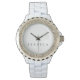 Eine wunderbare Damenuhr mit weißem Armband und grün-weiß-kariertem Ziffernblatt. Trägt sich ganz fabelhaft. Exzellenter Druck, sehr klare Farben. Schönes Design.