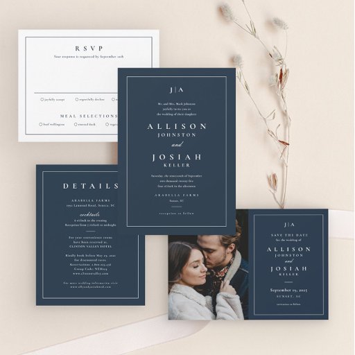 Elegant Navy Blue Wedding Invitations Designt von Stacey Meacham