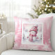 Classic Pink Snowman Winter Scene Kids Gift Pillow Kissen
