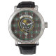 Uhr, Vintage Männeruhr mit schwarzem Lederarmband