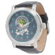 Uhr, Vintage Männeruhr mit schwarzem Lederarmband