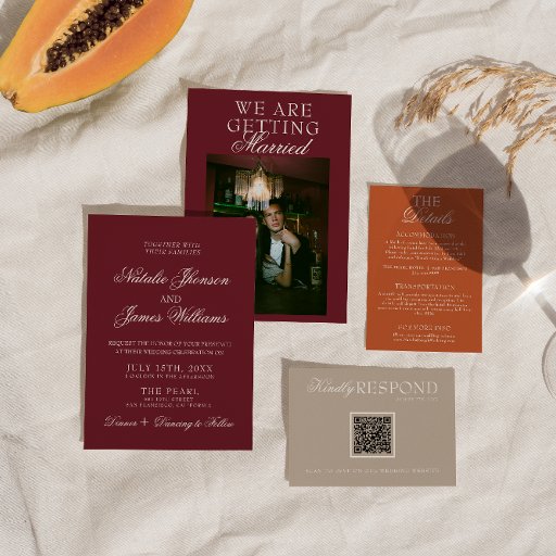Classy Burgundy White Fancy Old Money Wedding Save The Date