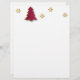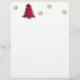Elegantes Weihnachtsbild mit einem einfachen, sauberen, roten Weihnachtsbaum mit goldenen Schneeflocken. Dieses Papier Kunstdesign ist modern, festlich, minimalistisch und beruflich.