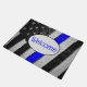 Denn die Vordertür des Offiziers ist dieses klassische, dünne blaue Liniendesign mit einer schwarz-weißen amerikanischen Fahne mit einem blauen Streifen und einem runden Namensschild mit dem Wort willkommen in passendem Blau. Das Textfeld ist eine Vorlage, die Ihnen das Anpassen erleichtert. Zeigen Sie Ihre Unterstützung für die Strafverfolgung.#leo #backtheblue #police