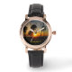 Uhr, Vintage Männeruhr mit schwarzem Lederarmband