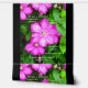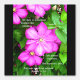 Vibrierende Magenta clematis Blume blühen vor einem Hintergrund grüner Blätter, durchsetzt von einem religiösen Zitat der Römer 5:3-5 in aufwändiger Schrift. Die leuchtenden Blütenblätter der Blume zeichnete das Auge, während die kontrastierende Vegetation die faszinierenden Details der Blüten und den sorgfältig platzierten Text hervorhebt. Das war eine wunderschöne, blühende Clematis-Rebsorte bei einem Freundeshaus im Juni 2013. Die Schrift stammt aus einer Nelson KJV Bibel von 1913, die einst meinem großen Onkel John gehörte.