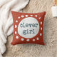 Ein fett roter Hintergrund zeigt die Phrase "cleveres Mädchen" in der Mitte, umgeben von einem Ring von weißen Punkten, umgeben von einem größeren weißen oval. Das spielerische und vereinfachende Design betont die zentrale Botschaft.