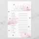 Diese elegante Cloud 9/Cloud 9 Baby Wort Rührei/Baby Dusche Spielkarte bietet einen weißen Hintergrund mit flauschigen rosa Wolken in Aquarell. Personalisieren Sie es für Ihre Bedürfnisse. In meinem Geschäft finden Sie passende Produkte. Antworten: 1. ABBILDUNG 2. PAKIFIER 3. STROLLER 4. UNTERSUCHTE TIERE 5. KÖRPER 6. TEDDY BEAR 7. FLASCHE 8. KINDERZIMMER 9. FLASCHE 10. FORMEL 11. MILCH 12 KRADLE