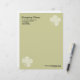 Ein Business Letterhead mit einem attraktiven und eleganten Kleeblattmotiv in den oberen, rechten und unteren links Seitenecken, die einen halben Zentimeter von den Kanten entfernt positioniert sind. Firmenname, Anschrift sowie Telefon-, Fax- und Mobilfunknummern in der oben links Ecke. Web- und E-Mail-Adresse rechts unten ausgerichtet. Bereit für Ihre persönlichen Daten.