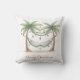 This fun coastal holiday inspired Christmas holiday throw pillow features palm trees decorated with ornaments and a hammock on each side. Great for holiday party decorations and Christmas home decor.