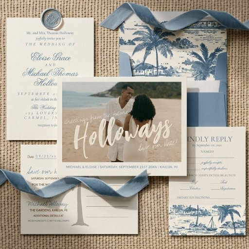 Coastal Toile Pattern Dusty Blue WeddingDesignt von Molly H