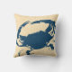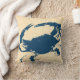 Kissen werden von Silhouetten mit gelben Sepia-Kräuterbeinen und blauen Krabben geworfen.