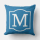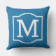 Stilvolles und klassisches quadratisches Kissen mit Akzenten im Außenbereich mit einem Monogramm-Initial mit einem schlichten dekorativen Rahmen in weißer Farbe mit kobaltblauer Hintergrundfarbe. Passen Sie den Hintergrund an, um sich mit Ihrer Außendekoration abzustimmen.