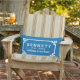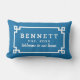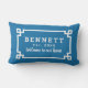 Stilvolle Lumbalkissenkonstruktion mit weißgriechischer Hauptgeometrie und Monogramm, die mit einem verheirateten Familiennamen oder Familiennamen personalisiert werden können, feststehendem Datum (das Jahr verheiratet oder das Jahr, in dem das erste Kind geboren war). Passen Sie den kobaltblauen Hintergrund an, um sich mit Ihrer Außendekoration abzustimmen.