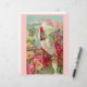 Dies ist ein Viktorianischer Ausdruck einer schönen und farbenfrohen Szene mit einem Kakadu und hellrosa Rosen. Im Hintergrund sind Berge und Palmen. Der Papagei hat ein hellrosa Wappen.