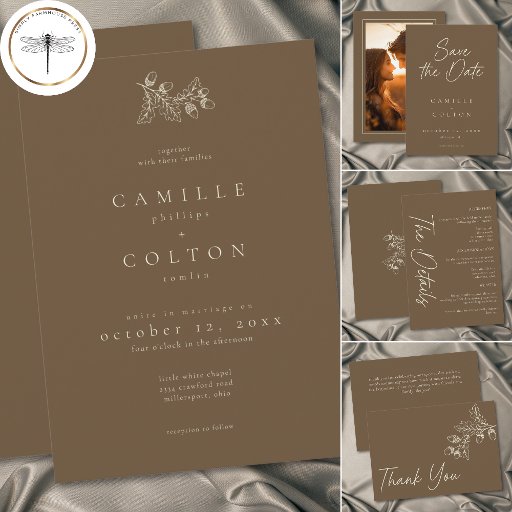 Cocoa Brown Minimalist Leaf Acorn Fall WeddingDesignt von Kathe Santillo
