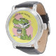 Uhr, Vintage Männeruhr mit schwarzem Lederarmband
