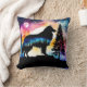 Collie auf der Bergspitze auf dem farbenprächtigen Kissen