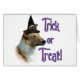 Wird es dieses Halloween Tricks oder Treats sein? Unser Urlaubsdesign hat Ihre Lieblingshunde Rasse, die Einmal, glatt beschichtete Collie, mit einem Hexenhut tragen. Fügen Sie ein wenig 'Hocus Pocus' zu All Hallows' Eva in diesem Jahr hinzu!
