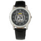 Uhr, Vintage Männeruhr mit schwarzem Lederarmband